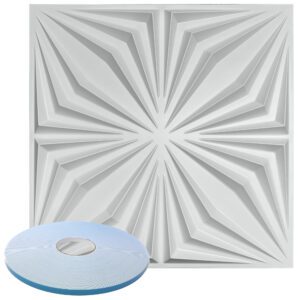 Vase Pattern – Premium PVC 3d Wall or Ceiling Tile Panel 19.7″ x 19.7″ Pack of 12 Matte White 32 Square Feet Coverage , Come With Double-Sided Foam Adhesive Tape