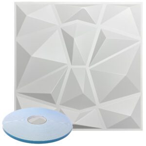 Diamond Pattern – Premium PVC 3d Wall or Ceiling Tile Panel 19.7″ x 19.7″ Pack of 12 Matte White 32 Square Feet Coverage , Come With Double-Sided Foam Adhesive Tape