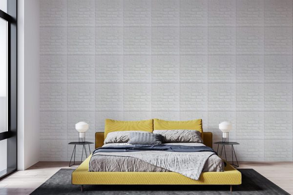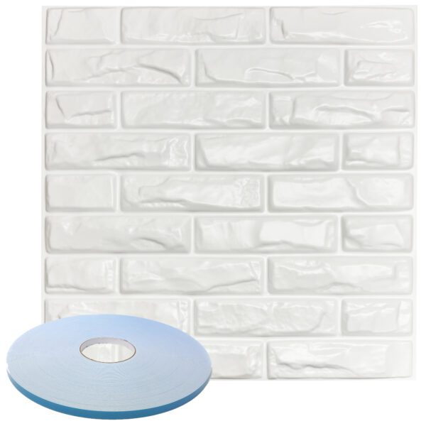 Brick Pattern – Premium PVC 3d Wall or Ceiling Tile Panel 19.7″ x 19.7″ Pack of 12 Matte White 32 Square Feet Coverage , Come With Double-Sided Foam Adhesive Tape