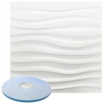 Cylinder Pattern – Premium PVC 3d Wall or Ceiling Tile Panel 19.7″ x 19.7″ Pack of 12 Matte White 32 Square Feet Coverage , Come With Double-Sided Foam Adhesive Tape