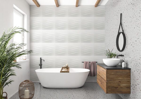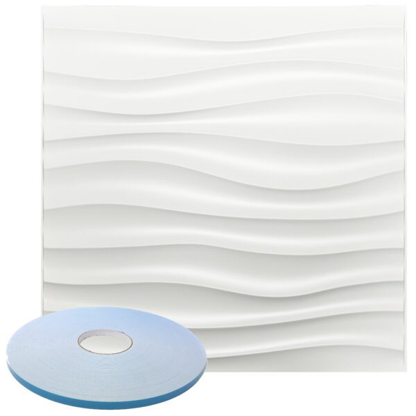Downsand White Pattern – Premium PVC 3d Wall or Ceiling Tile Panel 19.7″ x 19.7″ Pack of 12 Matte White 32 Square Feet Coverage , Come With Double-Sided Foam Adhesive Tape