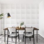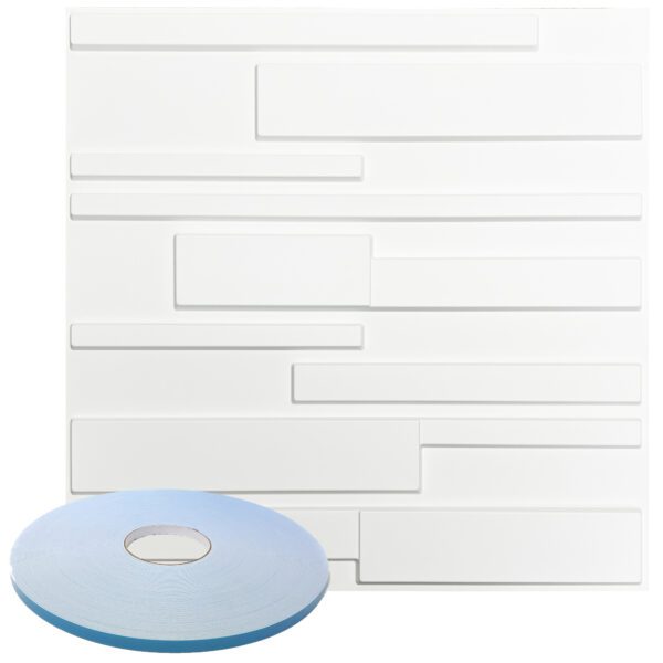 Rectangular Geometric Pattern – Premium PVC 3d Wall or Ceiling Tile Panel 19.7″ x 19.7″ Pack of 12 Matte White 32 Square Feet Coverage , Come With Double-Sided Foam Adhesive Tape