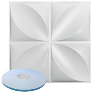 Vase Pattern – Premium PVC 3d Wall or Ceiling Tile Panel 19.7″ x 19.7″ Pack of 12 Matte White 32 Square Feet Coverage , Come With Double-Sided Foam Adhesive Tape