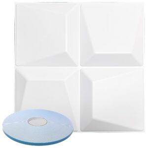 3d Square Pattern – Premium PVC 3d Wall or Ceiling Tile Panel 19.7″ x 19.7″ Pack of 12 Matte White 32 Square Feet Coverage , Come With Double-Sided Foam Adhesive Tape